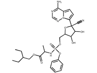 | 別名: | 2-乙基丁基(2S)-2-[[((S)-[[(2R;3S;4R;5R)-5-(4-aminopyrrolo(2;1-f)(1;2;4)triazin-7 -基)-5-氰基-3;4-二羥基四氫呋喃-2-基]甲氧基]苯氧基磷酰基]氨基]丙酸酯 |