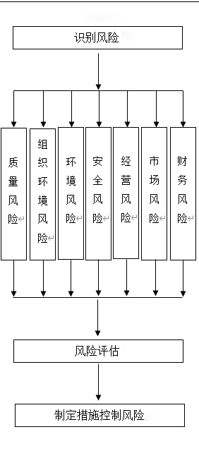 公司于質(zhì)量管理手冊中明確風(fēng)險(xiǎn)管理,風(fēng)險(xiǎn)和機(jī)遇的識別和確定流程如下文所示。公司根據(jù)風(fēng)險(xiǎn)分析結(jié)果,策劃應(yīng)對這些風(fēng)險(xiǎn)和機(jī)遇的措施,包括規(guī)避風(fēng)險(xiǎn),為尋求機(jī)遇承擔(dān)風(fēng)險(xiǎn),消除風(fēng)險(xiǎn)源,改變風(fēng)險(xiǎn)的可能性和后果,分擔(dān)風(fēng)險(xiǎn),或通過明智決策延緩風(fēng)險(xiǎn)。實(shí)施新實(shí)踐,推出新產(chǎn)品,開辟新市場,贏得新客戶,建立合作伙伴關(guān)系,利用新技術(shù)以及能夠解決公司或其顧客需求的其他機(jī)會(huì)。明確在管理體系過程中整合并實(shí)施這些措施;評價(jià)這些措施的有效性。