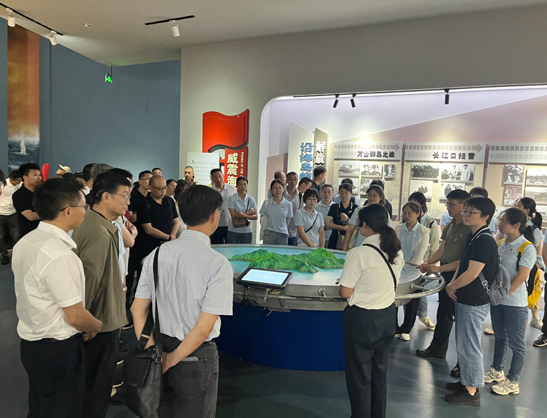 近代以來,隨著鴉片戰(zhàn)爭失敗,第一個不平等條約——《南京條約》的簽訂,中國淪為半殖民半封建社會,祖國的海權(quán)蒙受了深重的屈辱。到1949年4月,在渡江戰(zhàn)役的隆隆炮火聲中人民海軍在白馬建軍,開創(chuàng)了中國人民保衛(wèi)海疆的新紀元。人民海軍自誕生之日起,就立刻投入到解放沿海島嶼、剿滅海匪、打擊敵??找u擾和護漁護航的戰(zhàn)斗中威震海疆。館內(nèi)陳列著人民海軍裝備的各種艦艇和飛機模型、服裝及渡江木船等大量實物,黨員、中高管深切感受到“渡江作戰(zhàn)”、“解放江山島”等重大歷史時刻,為無數(shù)革命先烈們?yōu)榱嗣褡迕\拋頭顱、灑熱血的崇高理想和壯志情懷所感染,也為今天中國海軍以現(xiàn)代化航母為代表、不斷強大的綜合實力而引以為傲。在紀念館廣場上,大家駐足參觀并紛紛合影留念。參觀結(jié)束后,黨員們面向黨旗,莊嚴地重溫了入黨誓詞。