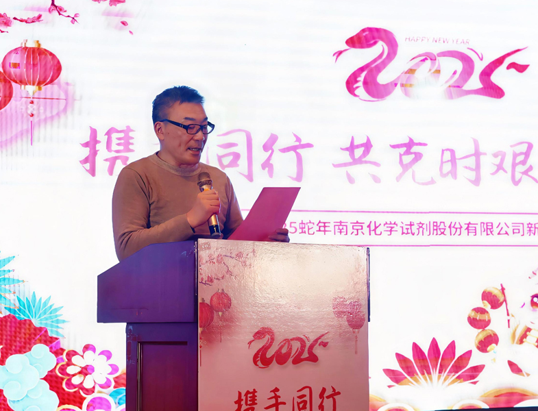 傍晚5時許,團拜會在一片喜慶氛圍中拉開帷幕。吳仁榮董事長致祝酒辭,向全體員工及其家屬致以誠摯的節日問候與美好祝愿,并向一直以來支持、關懷南京試劑發展的社會各界朋友表達深切的感激之情。他深情回顧了過去一年,南京試劑全體員工團結一心,迎難而上,在各領域、各崗位上辛勤耕耘,取得了來之不易的成績,勉勵大家來年繼續秉持“與顧客共贏、讓員工成長、盡社會責任”的理念,以更加飽滿的熱情,更加堅定的信念,更加務實的態度,攜手并進,共克時艱,再創佳績。