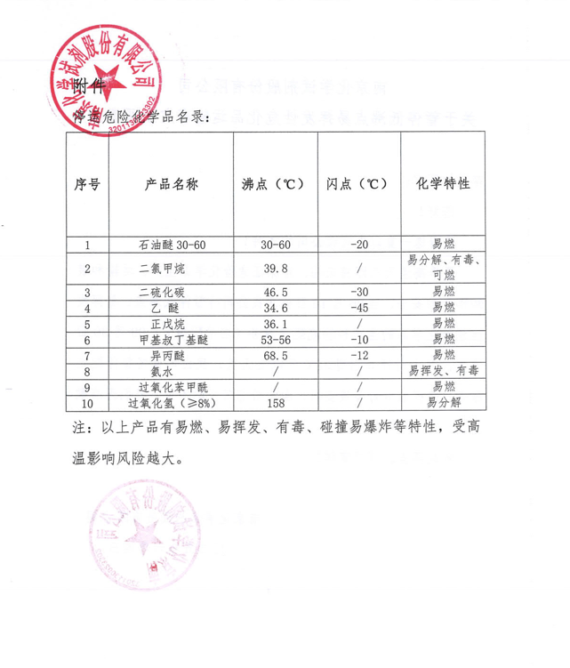 首頁 > 新聞中心 > 企業公告 關于暫停低沸點易揮發性危化品運輸事宜致顧客函