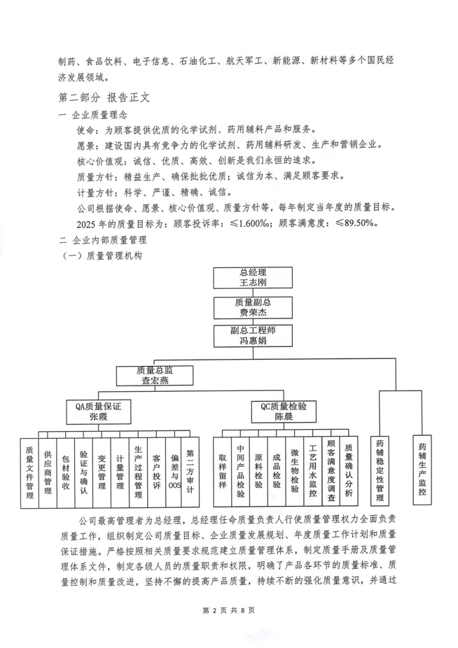 《南京化學(xué)試劑股份有限公司質(zhì)量信用報告》回顧了南京化學(xué)試劑在質(zhì)量管理、產(chǎn)品質(zhì)量責(zé)任、質(zhì)量誠信管理等方面的方針、制度、措施及取得的成效。關(guān)于報告的內(nèi)容,說明如下: